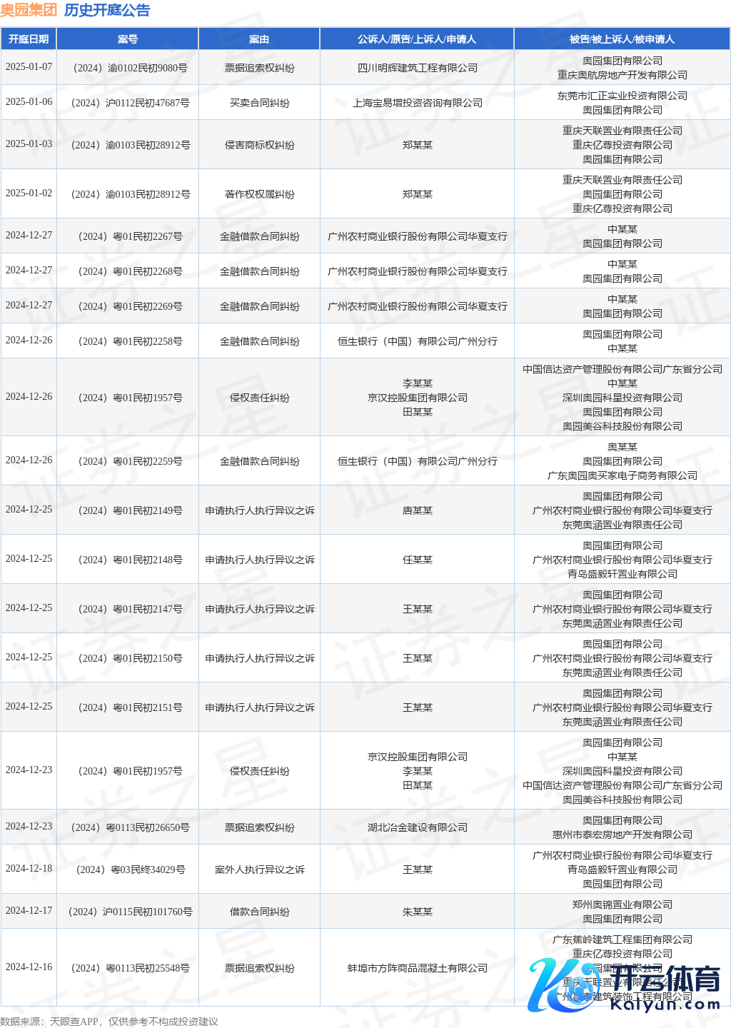 本站音书,阐发天眼查APP涌现,近日公布了一则奥园集团有限公司当作被告/被上诉东谈主的开庭公告,详备本色如下: