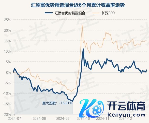 本站音尘开yun体育网,12月30日,汇添富上风精选搀杂最新单元净值为2.1955元,累计净值为7.7257元,较前一来回日高涨0.93%。历史数据清楚该基金近1个月下落0.63%,近3个月下落5.97%,近6个月高涨1.0%,近1年下落0.65%。该基金近6个月的累计收益率走势如下图:
