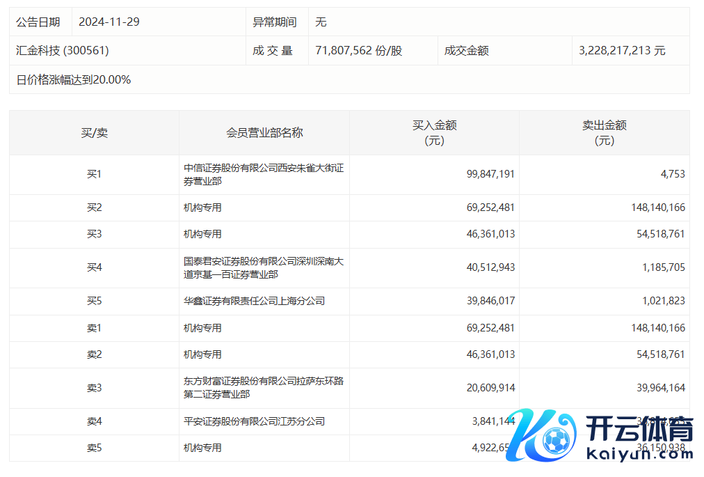 汇金科技本日20cm涨停体育游戏app平台,三机构净卖出1.18亿元汇金科技本日20cm涨停,三机构净卖出1.18亿元