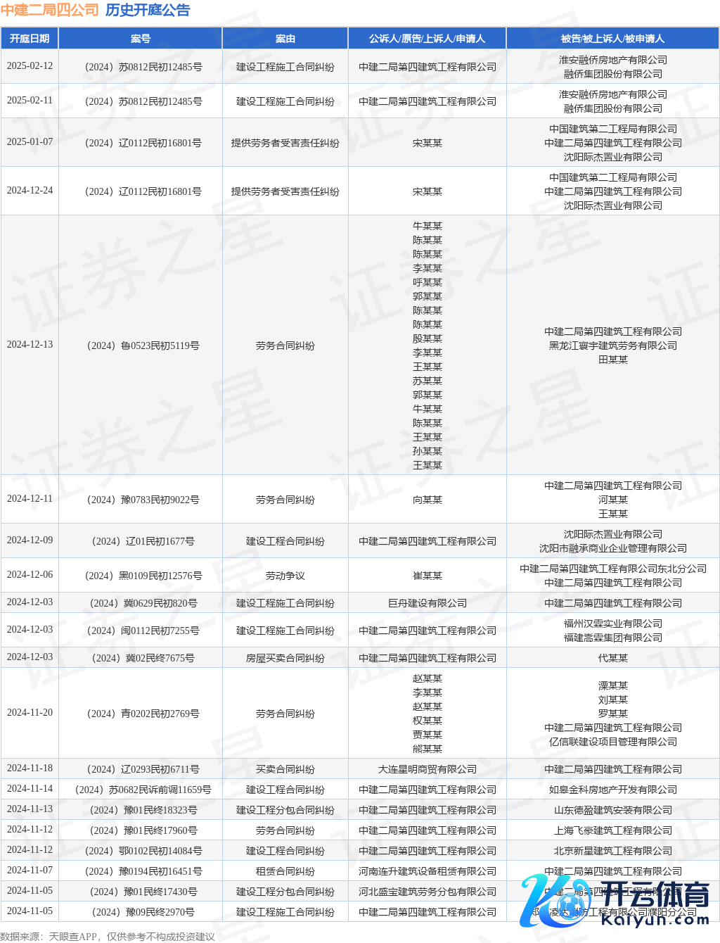 本站音尘,左证天眼查APP清晰,近日公布了一则中建二局第四建筑工程有限公司当作被告/被上诉东说念主的开庭公告,瞩目骨子如下: