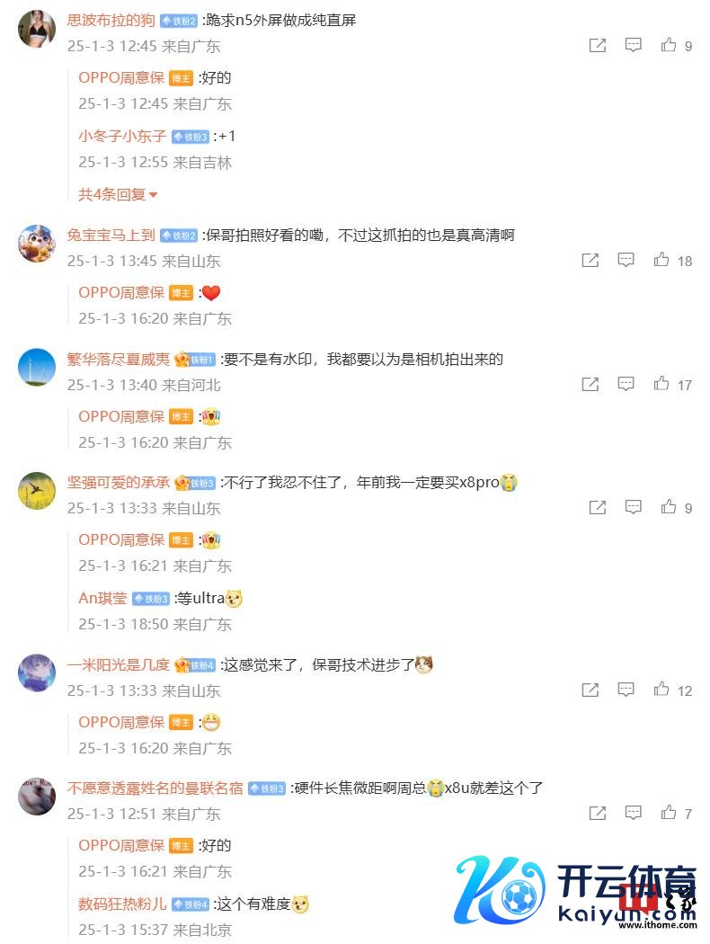 另外,周意保还对其他用户为Find X8 Ultra 手机建议的建议进行了相似回应,其中包括“硬件长焦微距”和“Find N5 折叠屏手机外屏作念成纯直屏”。