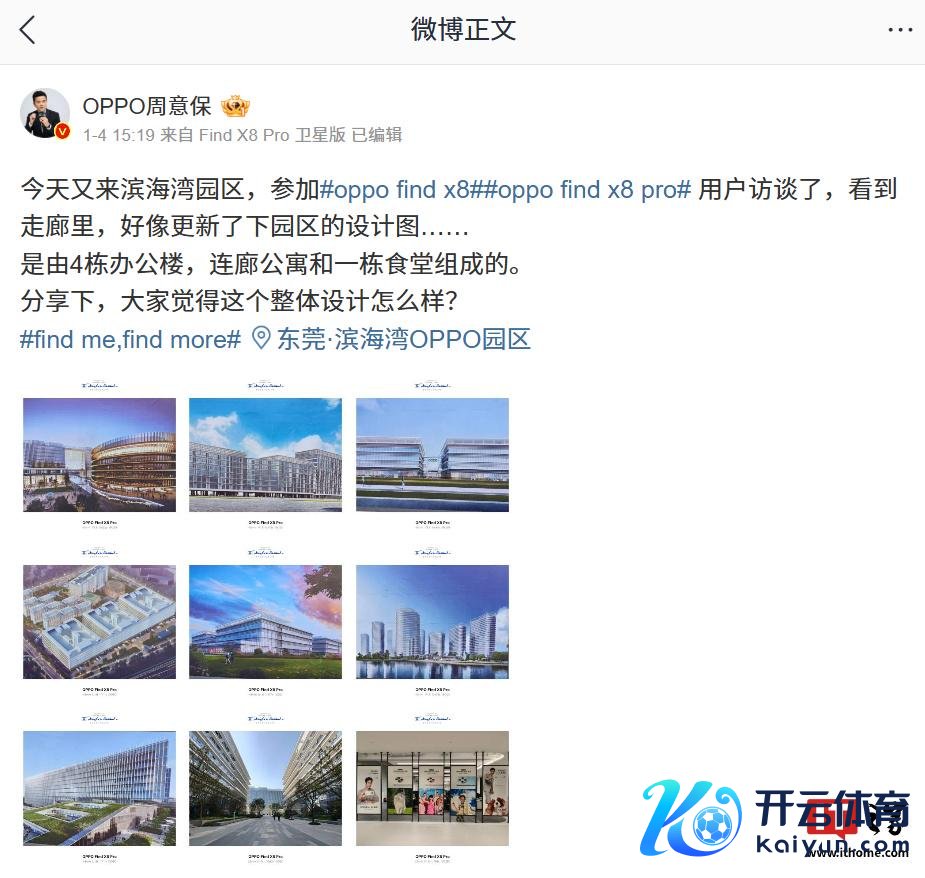 IT之家 1 月 6 日音讯,OPPO Find 系列家具认真东说念主周意保本月(1 月 4 日)发文表示去滨海湾园区插足了 OPPO Find X8 系列手机用户访谈,并共享了园区像片。他还在评述区中示意“研发一经入驻了,我本年下半年会搬过来办公”。