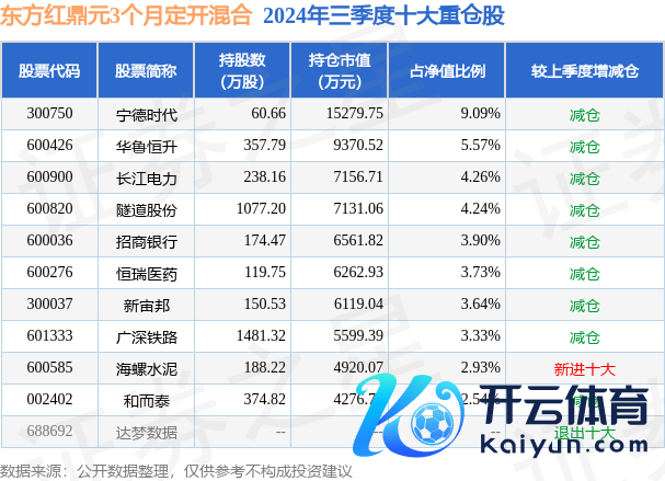 东方红鼎元3个月定开羼杂为羼杂型-偏股基金,凭据最新一期基金季报裸露,该基金金钱设立:股票占净值比83.94%,无债券类金钱,现款占净值比16.08%。基金十大重仓股如下: