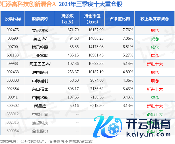 汇添富科技更始混杂A为混杂型-无邪基金,证实最新一期基金季报清晰,该基金财富成立:股票占净值比92.54%,无债券类财富,现款占净值比7.24%。基金十大重仓股如下: