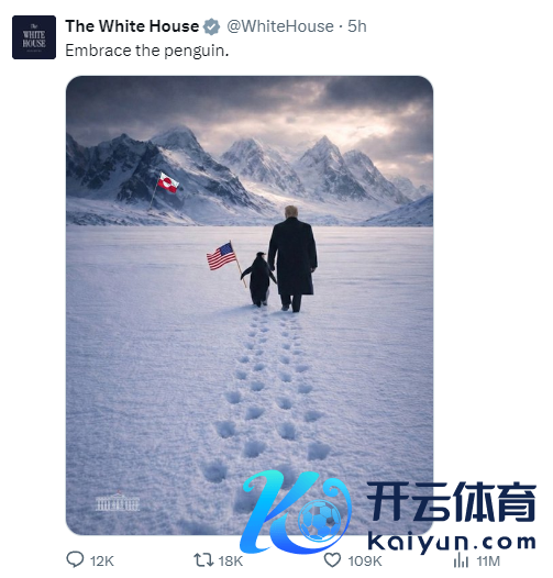 白宫发布特朗普与企鹅走向格陵兰岛AI图片白宫发布特朗普与企鹅走向格陵兰岛AI图片