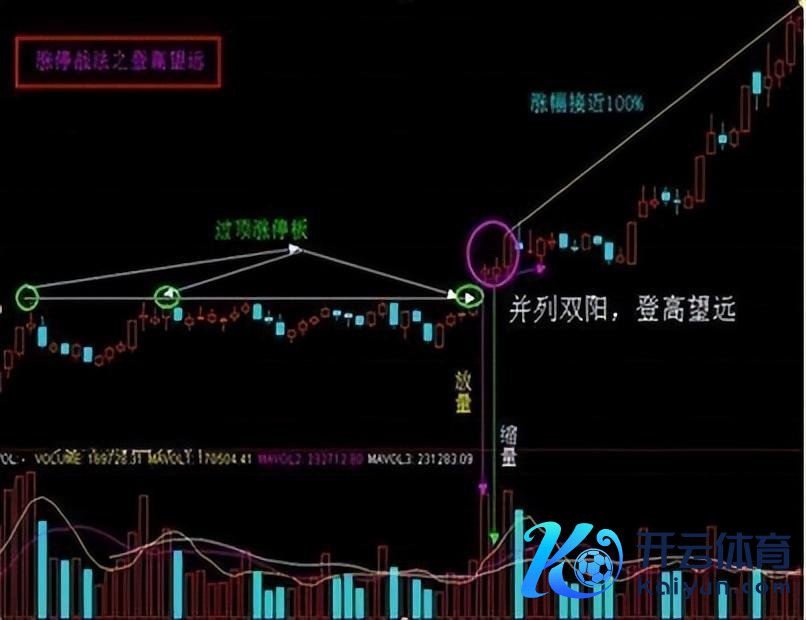 1、登高望远——在涨停板的背面收出两根并排阳线,像一幅千里镜相通,因此而得名。