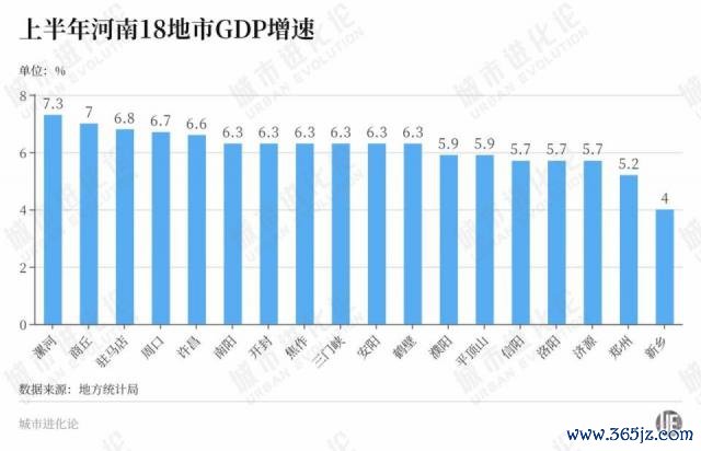 但从增速来看,在全省 17 个省辖市和济源示范区中,漯河、商丘、周口、驻马店、许昌等 14 地经济增速在 5.9% 及以上,高于全省平均线,而郑州(5.2%)、洛阳(5.7%)则稍显乏力。