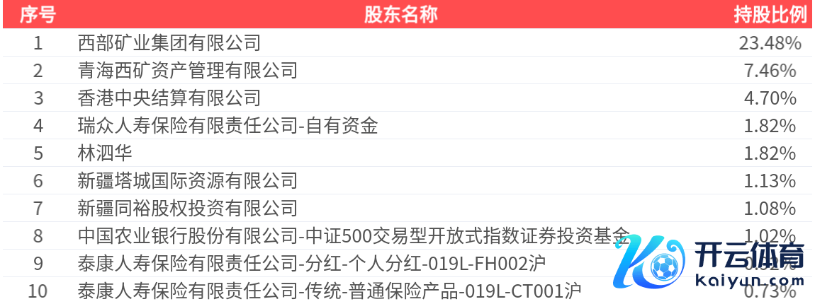 公司推动户数为11.35万户,前十大推动执股数目为10.52亿股,占总股本比例为44.15%开云官网切尔西赞助商,前十大推动执股情况如下: