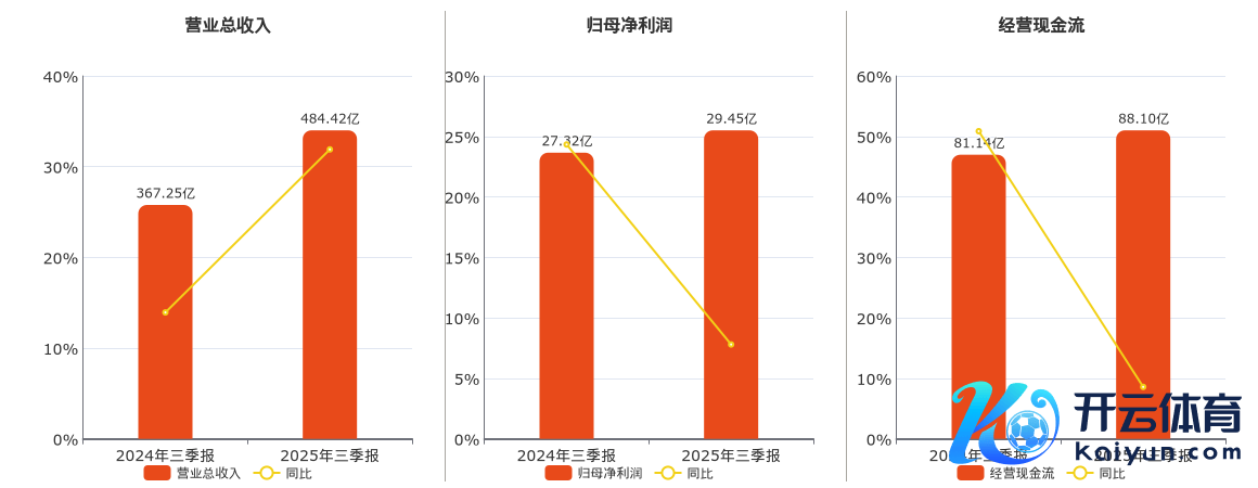 公司生意总收入为484.42亿元,较客岁同讲明期生意总收入加多117.17亿元,结束3年相接高涨,同相比客岁同时高涨31.90%。归母净利润为29.45亿元,较客岁同讲明期归母净利润加多2.13亿元,结束2年相接高涨,同相比客岁同时高涨7.80%。盘算推算举止现款净流入为88.10亿元,较客岁同讲明期盘算推算举止现款净流入加多6.96亿元,结束2年相接高涨,同相比客岁同时高涨8.58%。
